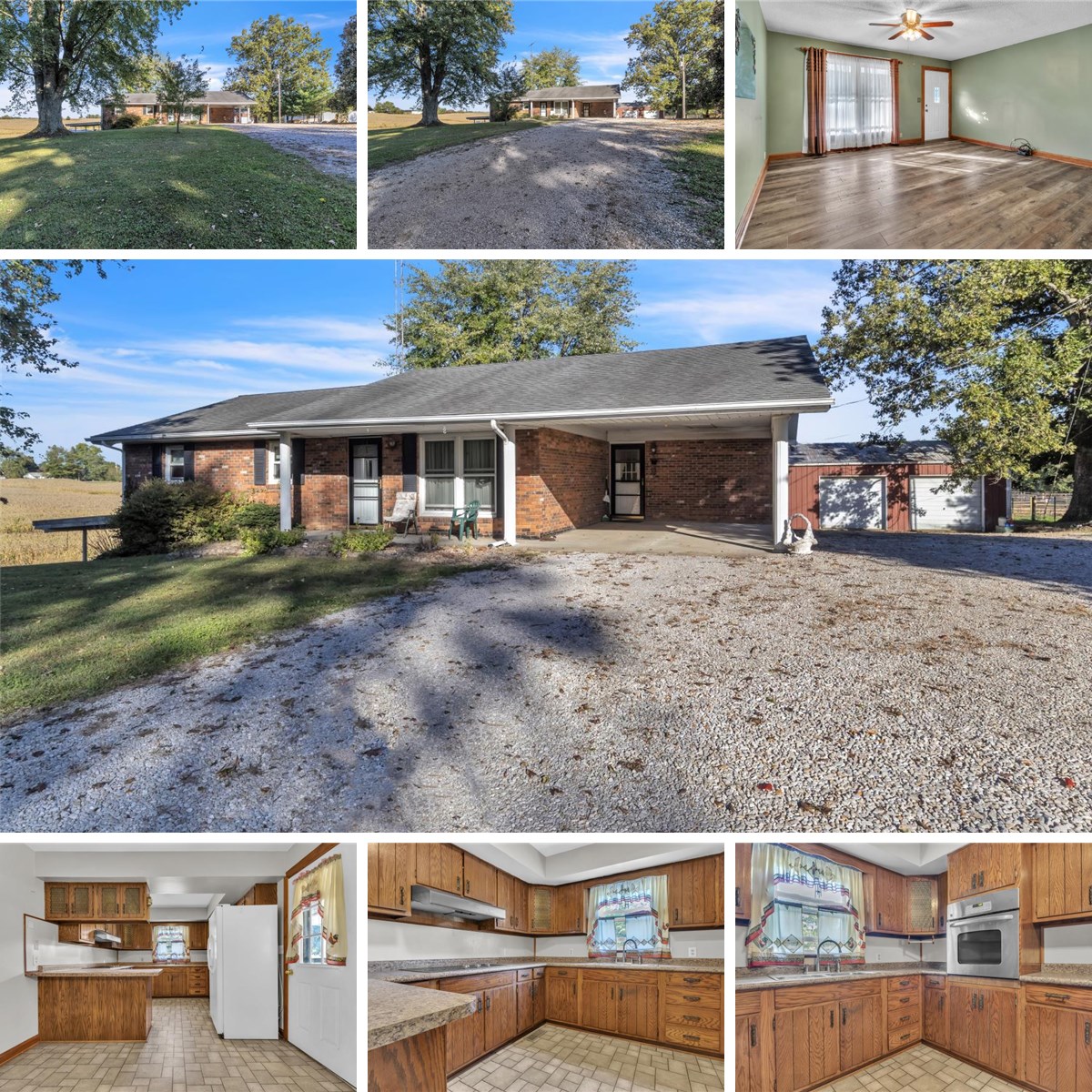 Enjoy peaceful rural living with this brick 3 bed, 2 bath, almost 2400 square feet home with walk out basement, pole barn and over 7 acres, some of which is currently leased to a farmer. The main level of the house has 3 bedrooms with a kitchen with dining area, living room, full bath, and tons of storage. The walk out basement offers another full bathroom, fireplace, storage, more living room and rec space, and has a rear laundry and storage room. This spread has plenty of parking with two driveways and a large carport attached to the home. The 24'x40' pole barn has two bays (one with an electric opener), workbenches, electric, concrete floors, and a stub out for connecting your own wood burning fireplace. Roof 15 yrs; Water heater 11 years; replacement windows; owner has always used monthly 'rid x type' septic treatment and never had an issue with the system. Adjacent 12.64 acres to the north is also available for sale.