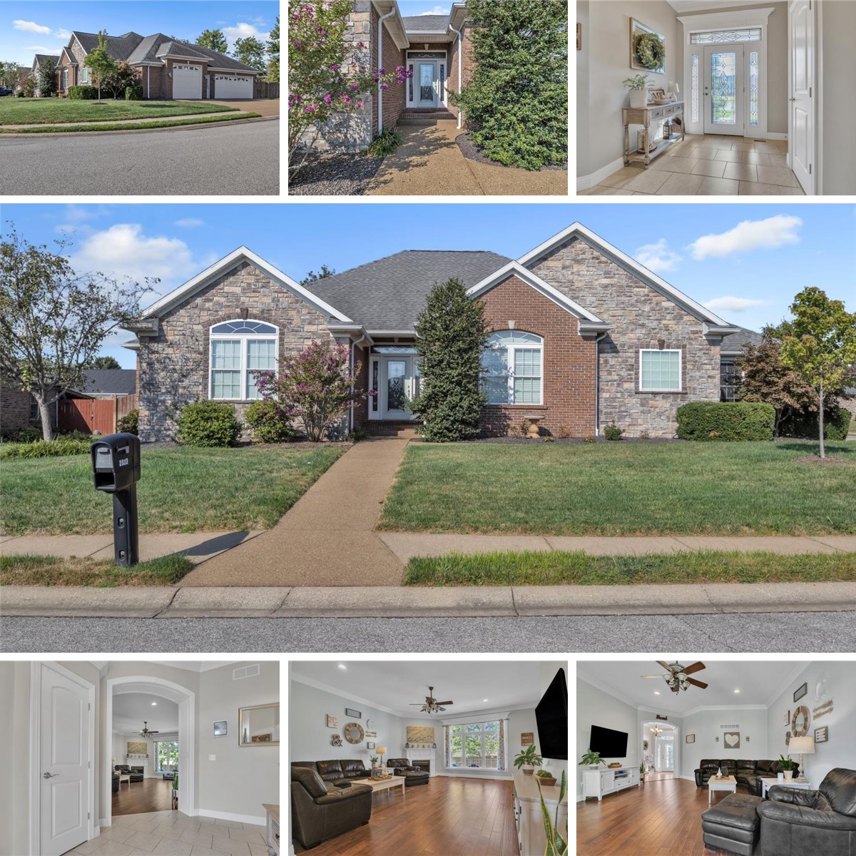 One level brick and stone ranch with a basement on a corner lot in Waterstone Village in Newburgh! 10' ceilings in the main level and basement, poured basement walls, a whole house attic fan, extensive upgraded woodwork throughout, engineered flooring (main living, hallways and owner's suite), and tons of large windows offering natural light separate this Niehaus built home from an ordinary build. The tiled large entryway invites you into a split floorplan. The owner's suite is spacious with its vaulted ceilings and large ensuite with twin vanities, Aqua Glass jet tub, tiled surround shower, and custom wood shelved closet. Two additional bedrooms with brand new carpet and a hallway full bath with tile surround tub/shower combo on round out the other end of the home. The main living room has a gas fireplace and is open to the large eat-in kitchen with tiled floors, castled cabinets, stainless appliances, a huge granite bar, and two pantries. Step out to the 10'x17' rear screen room and a backyard with a large exposed aggregate patio, privacy fence, custom cobble stone sidewalk, lush landscaping, and an irrigated lawn (2 water meters). Enjoy movie night and additional family space in the basement with a custom built projector system and tons of storage. The side load 3.5 car garage is over 1000 sf and offers a 9'x10' tall overhead door for a large truck as well as 18'x7' overhead door, attic storage, and a utility sink. Updates include: screens on patio 2018; bedroom carpet 2025; water heater 2025; water softener 2025; refrigerator 2024; kitchen, bathroom, and ensuite granite 2023; tiled ensuite shower 2023; cobble stone walk 2024; engineered hardwood in living room and master 2017.