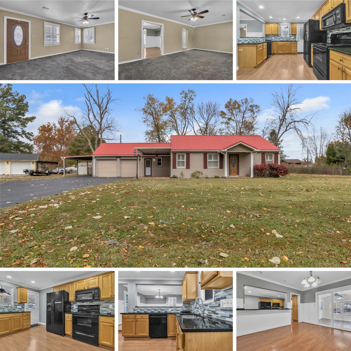 Well maintained 2 bed, 1.5 bath home on almost half an acre is available in Lakewood Hills subdivision on Evansville's convenient North side. The kitchen is remodeled with granite counter tops, tile backsplash, recessed lighting, ample cabinets with pantry, and a breakfast bar. It flows to a remodeled half bath and laundry room with included stack washer and dryer and over to the large dining room, which has a sliding door to a finished sunroom with built in cabinets. The large living room has plantation shutters. The hallway full bath has been fully remodeled with a stately tile surround step in shower with glass door. Two bedrooms are at the end of the hallway. Outside, the paved driveway is massive leading to the two car attached garage and side carport. The side yard has RV electric hookup, a chain link fenced back yard with two huge storage sheds, and a concrete covered patio space. Updates include: roof 5 yrs; newer gutters; replacement windows, HVAC believed to be about 5 years; water heater 2020.