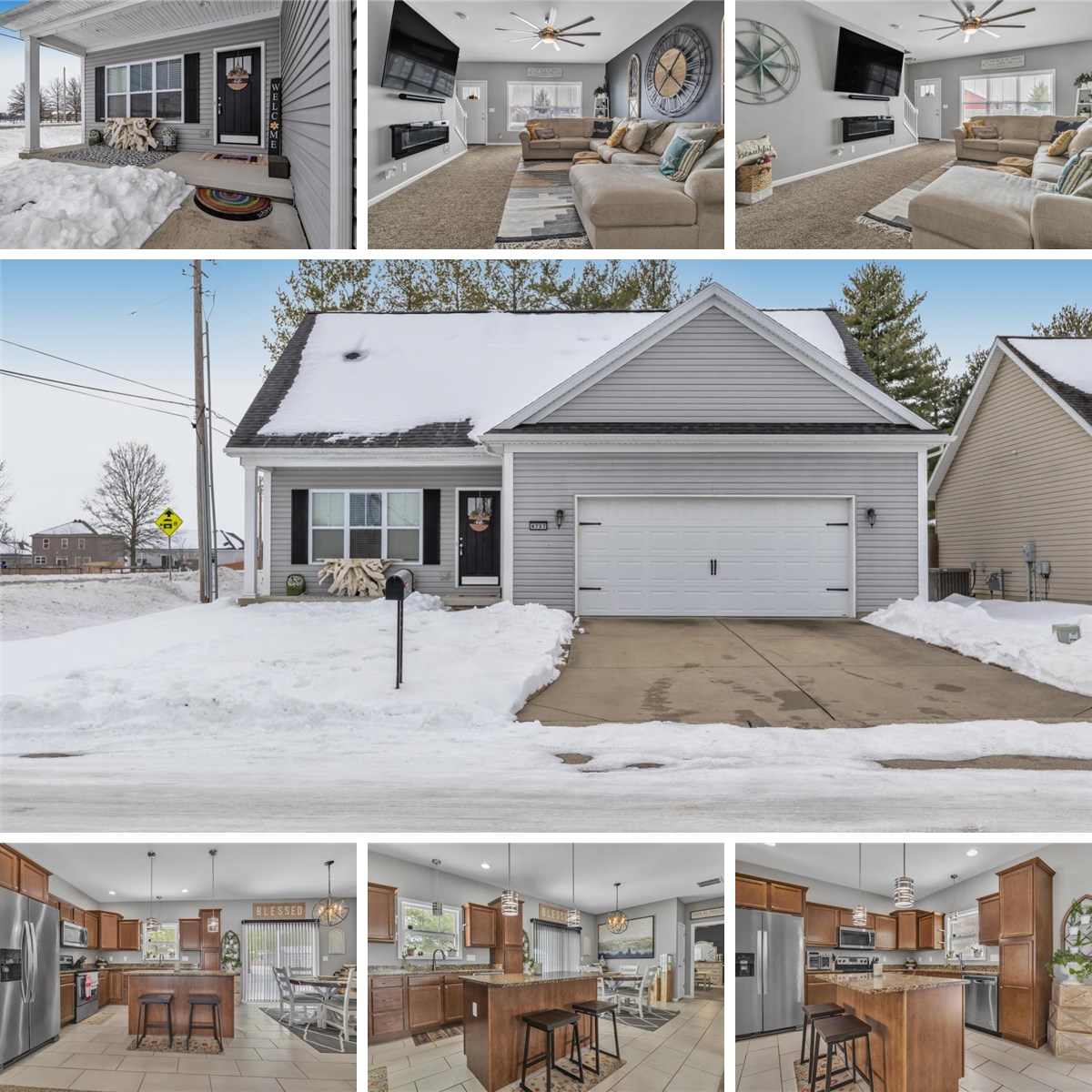Nicely maintained 3 bed, 2.5 bath home in Falcon Ridge subdivision on Evansville's beautiful North side and USDA eligible! Step in off the 15'x5' covered front porch to an open concept living room featuring a wall mounted LED fireplace that flows right into the eat-in kitchen, a perfect layout for entertaining. The large granite island, tile floors, and upgraded pendant and chandelier lighting balances nicely against the stainless steel appliances and castled cabinetry. A convenient half bath, laundry room with shelving and cabinets, and a door to the back patio complete the kitchen area. The main level master has an en suite and two closets, one of which is 11'x7'. The upstairs has an additional two bedrooms, ample sized at 14x14, with a large full bath with twin vanity. This 2017 Murphy home is energy efficient and low maintenance thanks to its Carrier dual zoned HVAC and tankless gas water heater. The yard barn for additional storage is included.